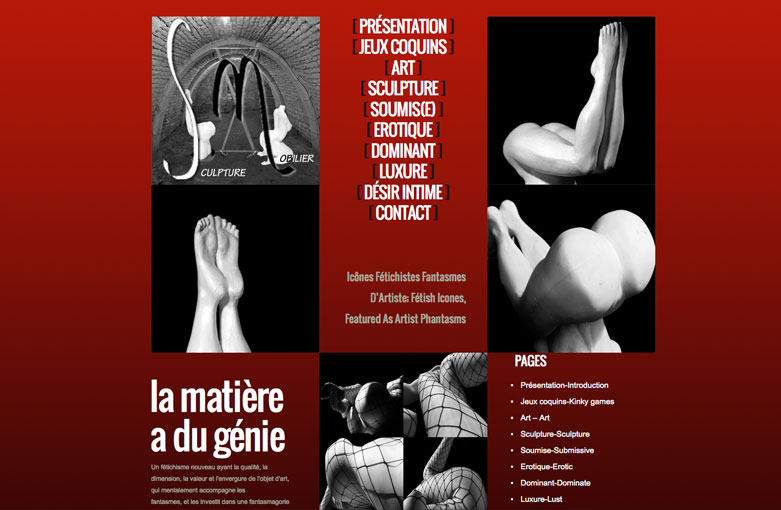 Il s’agit d’un site vitrine de sculptures mobilier en résine de couleur blanche et rouge, exécutées par un sculpteur de grand renom souhaitant demeurer anonyme.